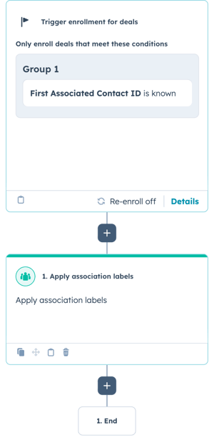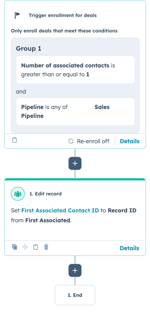 Workflow 1: Deal | First Associated Contact ID - Step 1