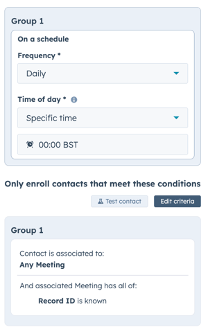 Workflow 1: Contact | Upcoming Meeting – Step 1